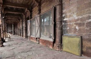 Dhār (Madhya Pradesh). Interior of the east wall of the Kamāl Maula showing the three inscriptions found in the miḥrāb now mounted in glazed frames.